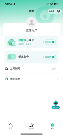 (1)通过微信小程序搜索校趣关注后进行绑定。