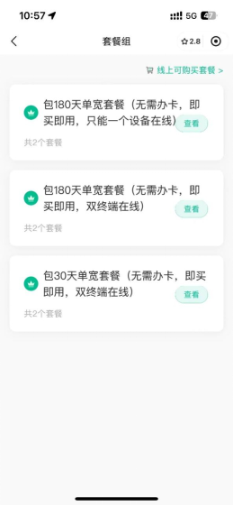 (2)登录成功后即可查看到套餐信息、套餐购买记录。