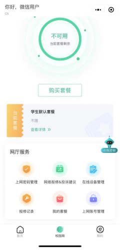 4、然后进入校园网界面进行购买套餐